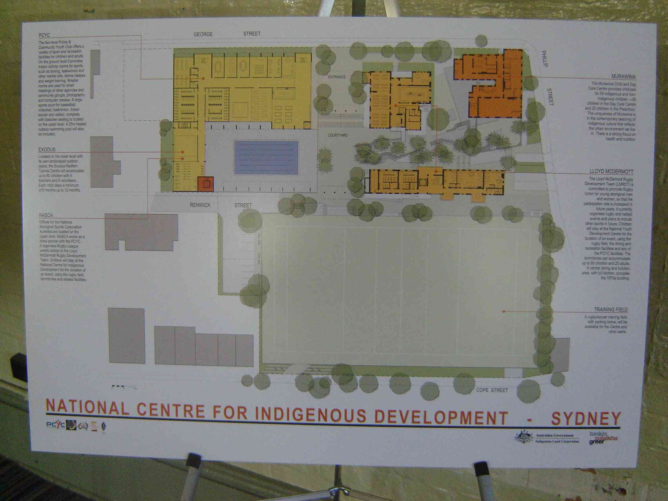 This is the third of three displays at the ILC Media Conference. This 150 KB PDF file is a photo of the current ILC plans for the former Redfern School Site. This display panel has not been put up on the ILC site probably due to its reference to the PCYC who has not agreed to move into the new complex. The text on the display is provided seperatly. The final plans are still being developed.