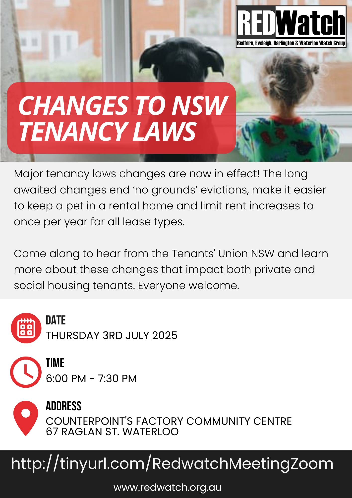 REDWatch Meeting on Change of Tenancy Laws with Tenants Union - 3 July 2025